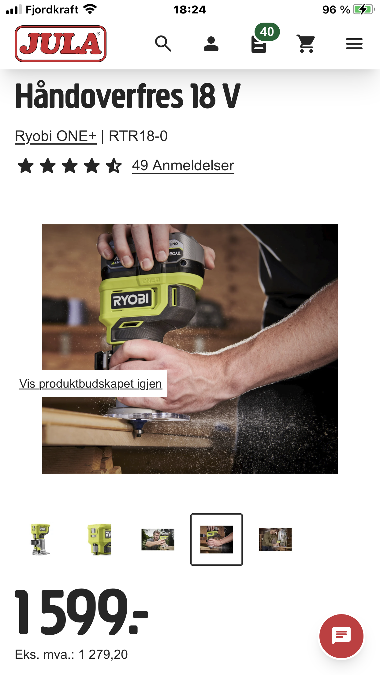 Ryobi 18V One+ serien Håndoverfres med børsteløs motor å det er årets modell nemlig 2025