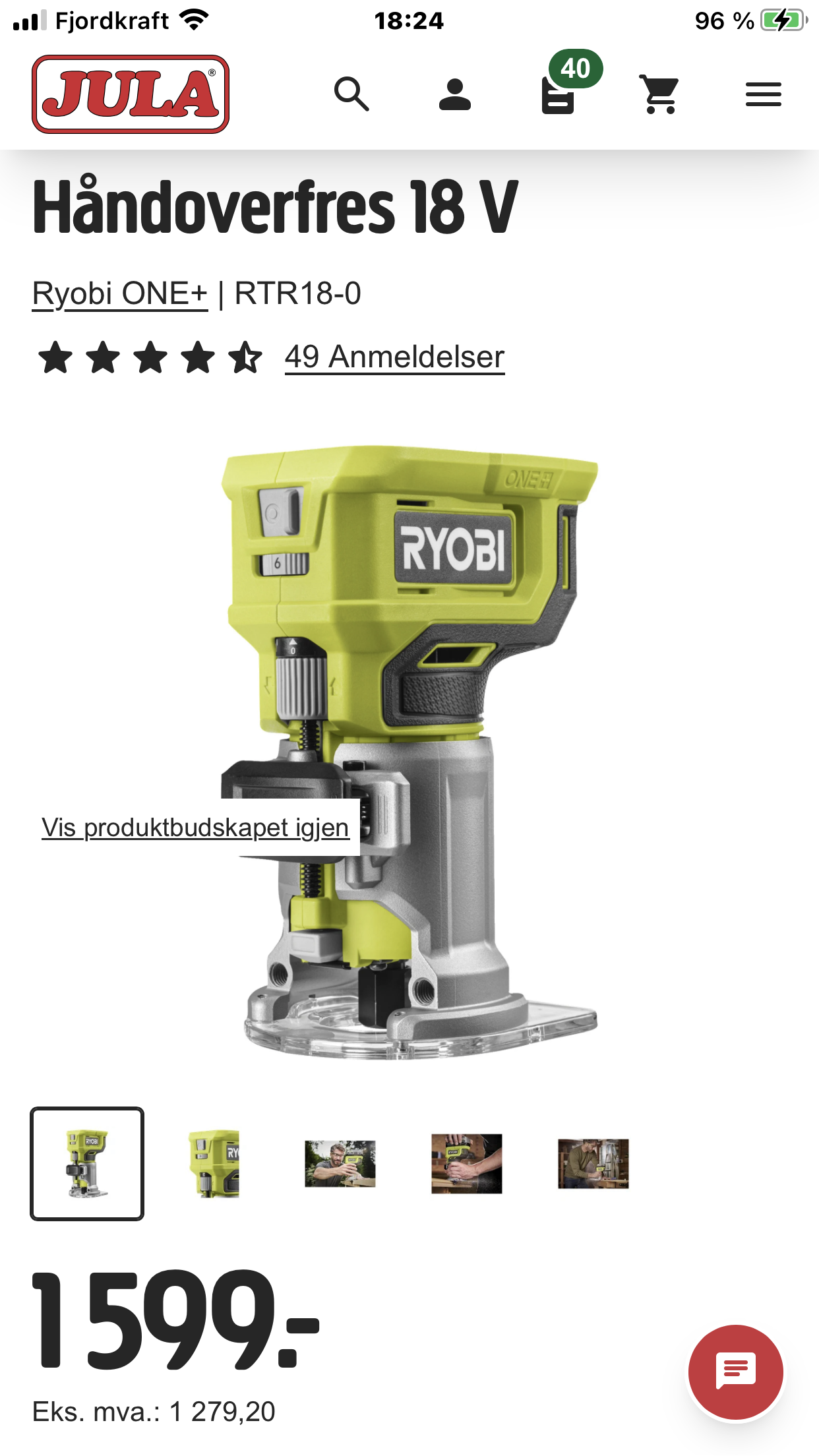 Helt nytt rett i fra butikken i dag,Urørt vare,kommer i orginal esken til Ryobi og er uåpna med forseglingen inntakt,koster på Jula nå i dag 1599kr,så halvpris det er billig det ja,kanon tilbud,løp å kjøp